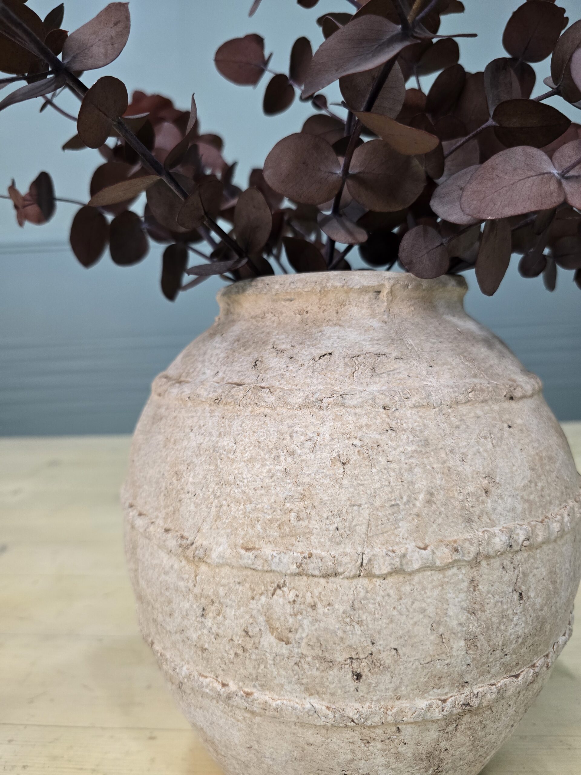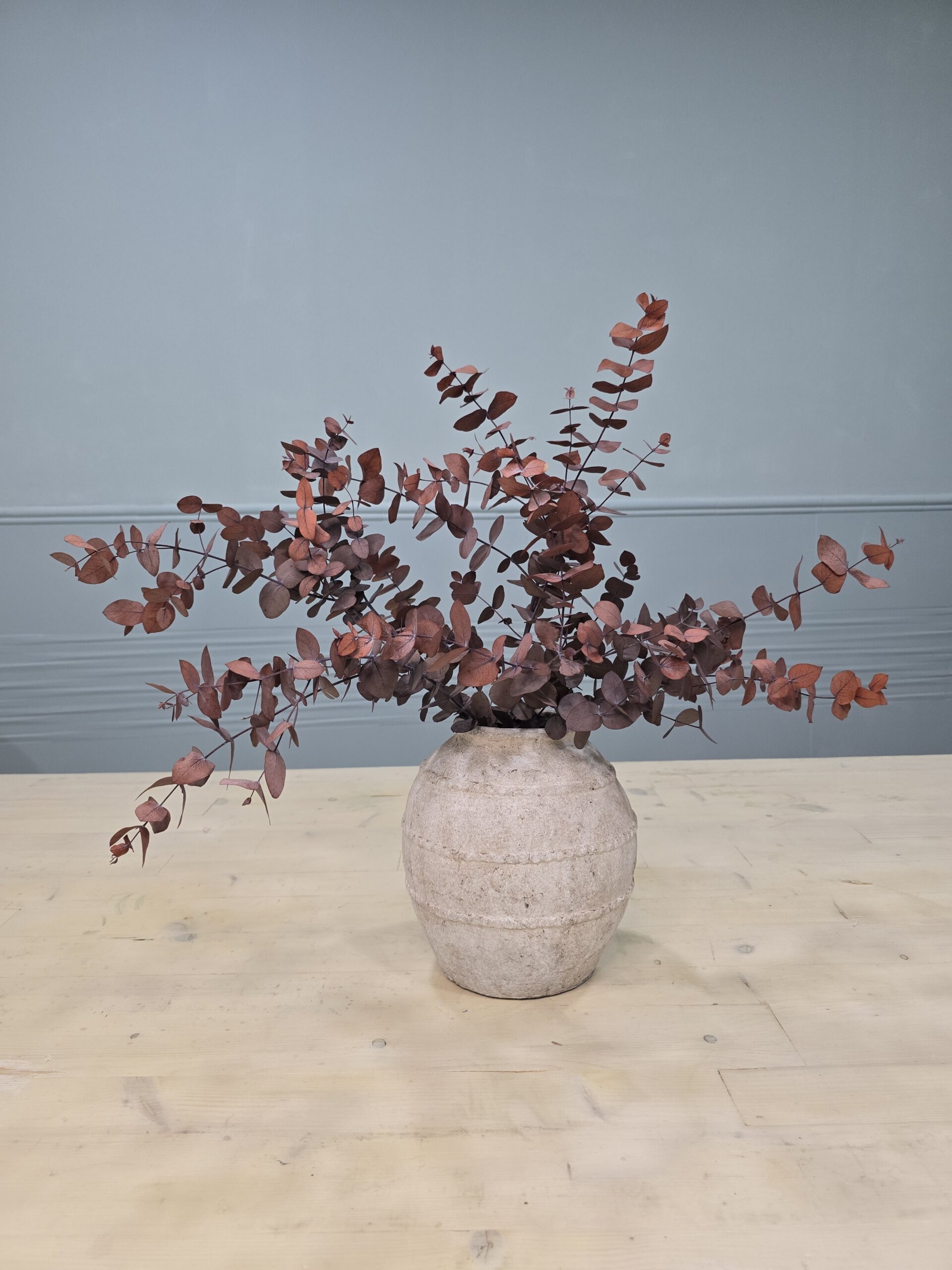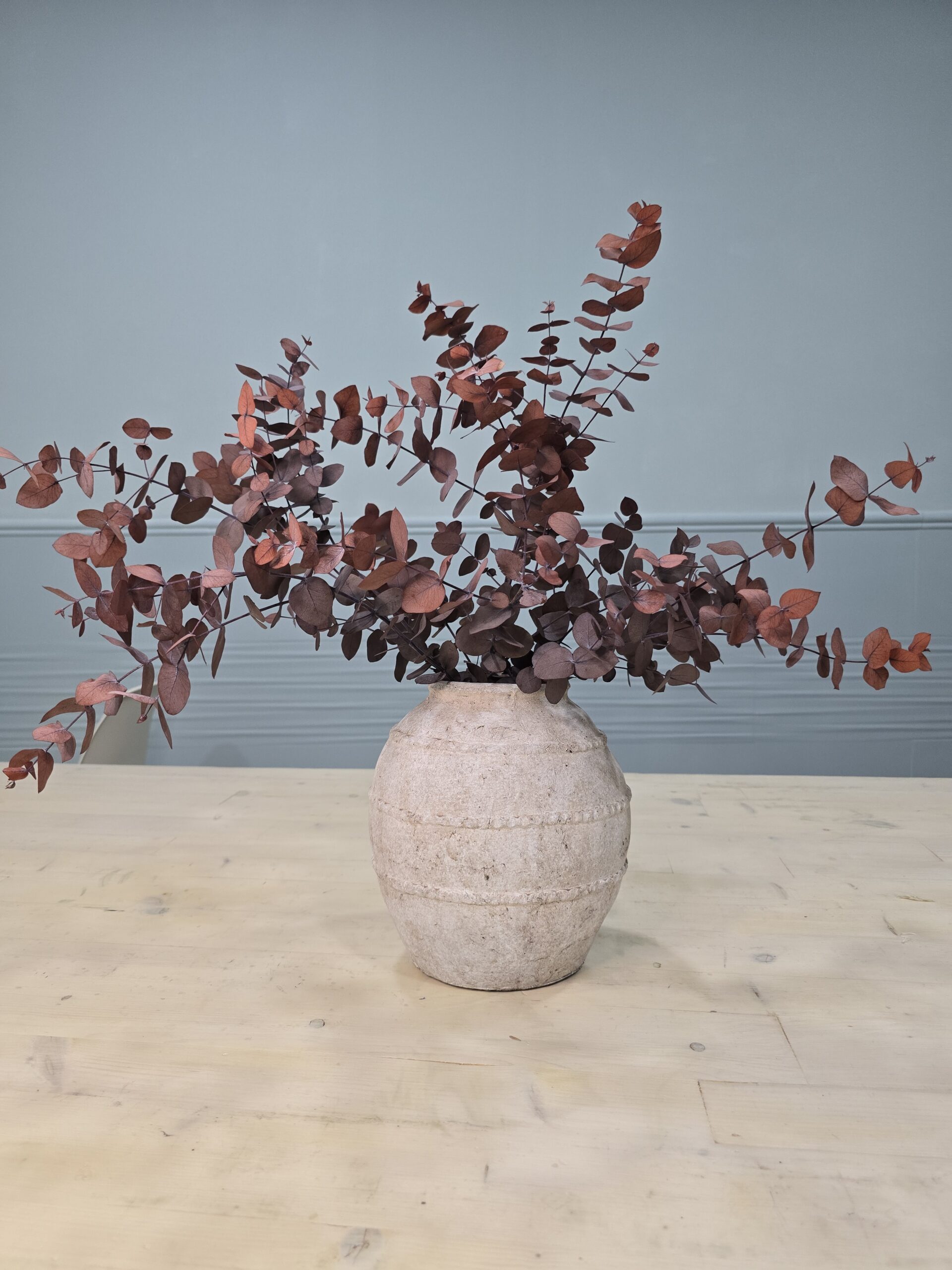 Maravilloso jarrón de cerámica con eucalipto mocca preservado. A veces no se necesita nada más...